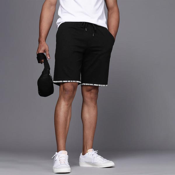 Men Black Typography Printed Shorts